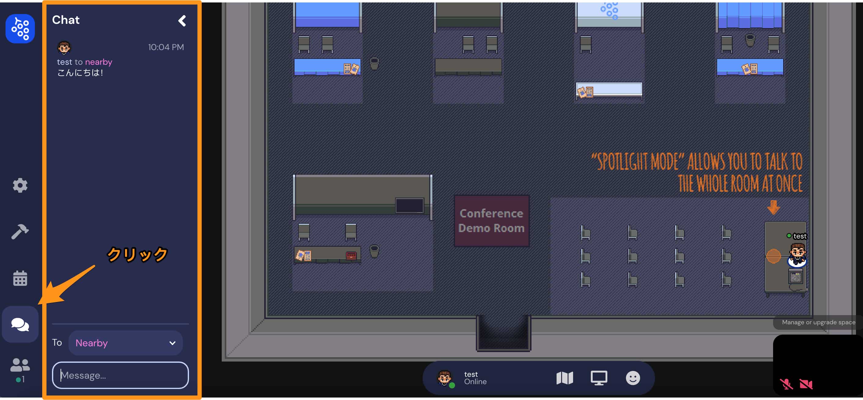 画面左の吹き出しアイコンをクリックすればチャット機能も利用できます。